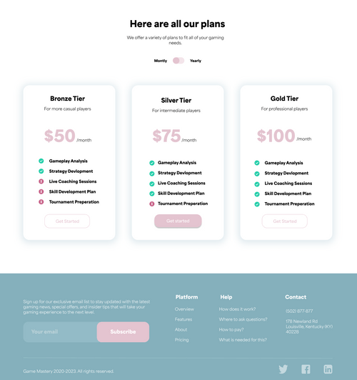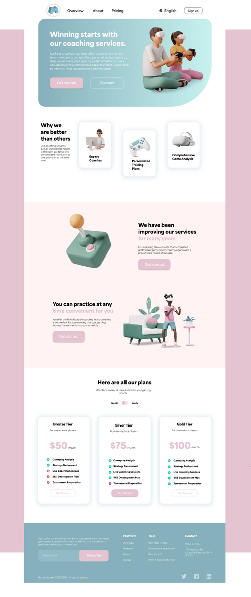 After conducting extensive stakeholder feedback, we finalized the designs for the website of our video game coaching service. The process involved gathering input from key stakeholders, including coaches, gamers, and industry experts, to ensure that the website's visual aesthetics, user experience, and content align with the expectations and needs of our target audience.