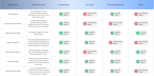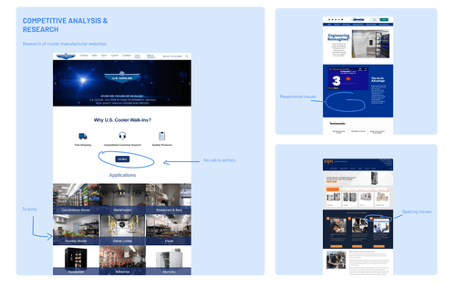 I undertook thorough research on various freezer/cooler manufacturers across the United States to conduct a comprehensive competitive analysis of their websites. Here were my findings: